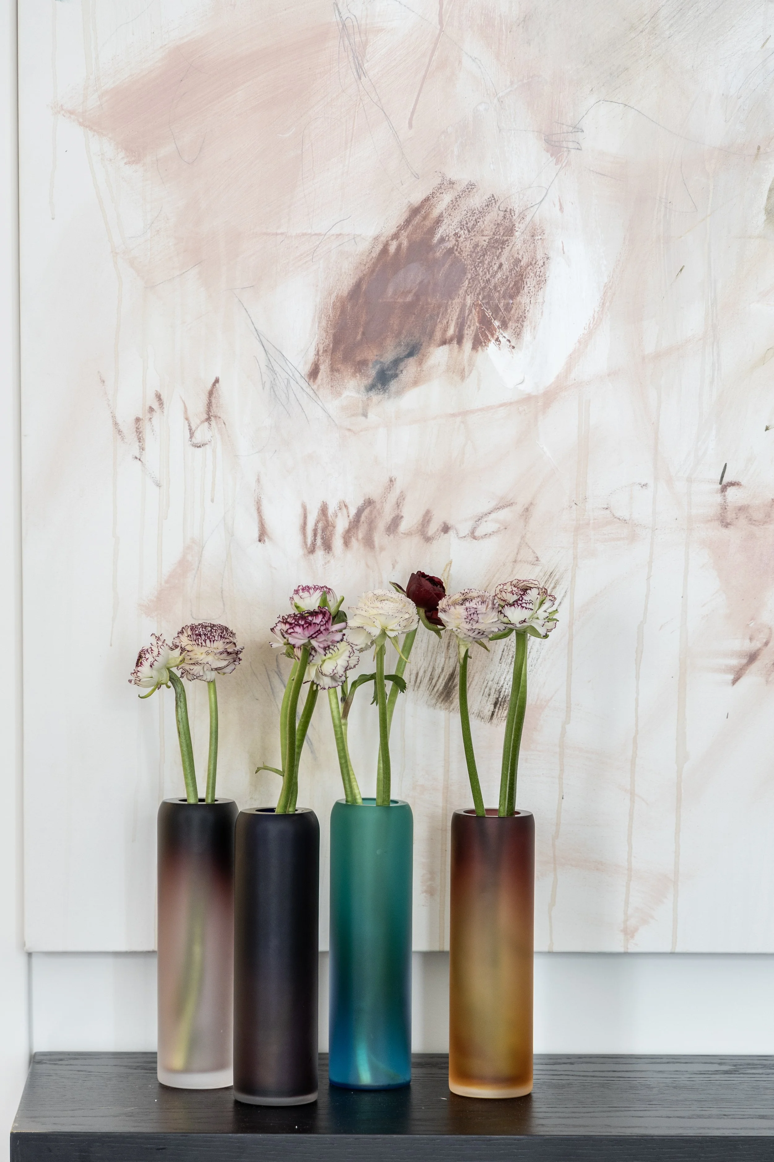 A palette of soft pinks and deep burgundy is anchored by the dramatic presence of Rosso Levanto marble, its rich veining adding depth and contrast.